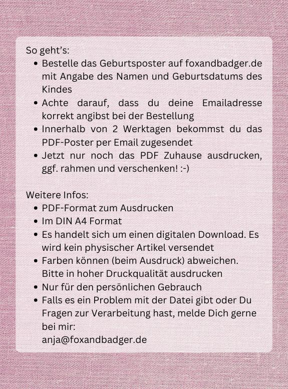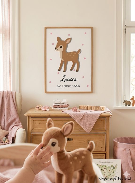 Personalisiertes Geburtsposter „Kleines Reh“, PDF